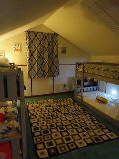 Here are some pictures of the new upstairs curtains we put up. The ones over the closets are temporary until I get a chance to cut down some doors that I was given off of Freecycle (www.freecycle.org).
